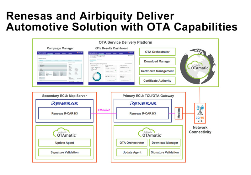 “The integration of Renesas SoC technology and Airbiquity OTA service delivery provides a market-leading option for automotive customers that’s available today.”
