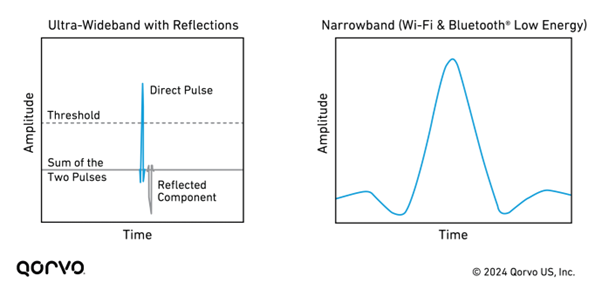 Figure 3: Comparison of UWB impulse radio with reflected signal and Bluetooth LE narrowband signal