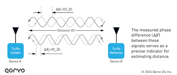 UWB measures distance using Time of Flight (ToF), calculating the round-trip time of a pulse between two devices, such as an anchor and a tag.