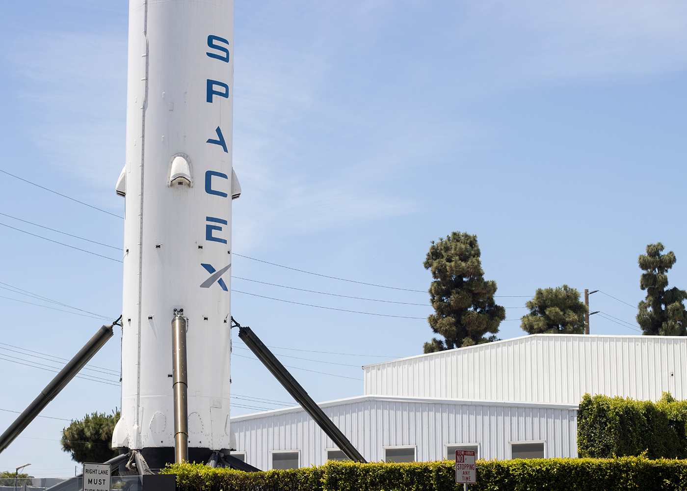 SpaceX’s Falcon 9 re-usable booster outside its Hawthorne headquarters.