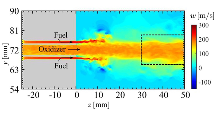 The combustor the scientists picked to simulate is one of model rocket engines. They were able to pinpoint the moment of transition from the stable combustion state to combustion oscillations and visualise it. They found that significant periodic flow velocity fluctuations in fuel injector affect the ignition process, resulting in changes to the heat release rate. The heat release rate fluctuations synchronise with the pressure fluctuations inside the combustor, and the whole cycle continues in a series of feedback loops that sustain combustion oscillations.