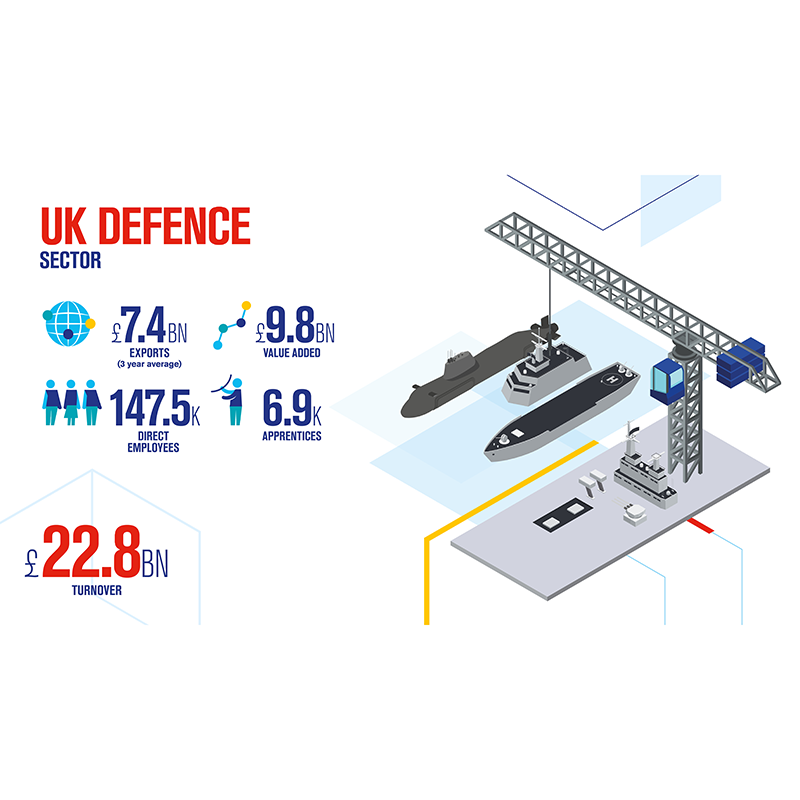 The publication further highlights that defence organisations are present in every region of the UK, and the sector delivers high value, skilled, and wage jobs with 70% of jobs outside London and the South East and wages being 12% higher than the UK average with an average salary of £37.4K per person.
