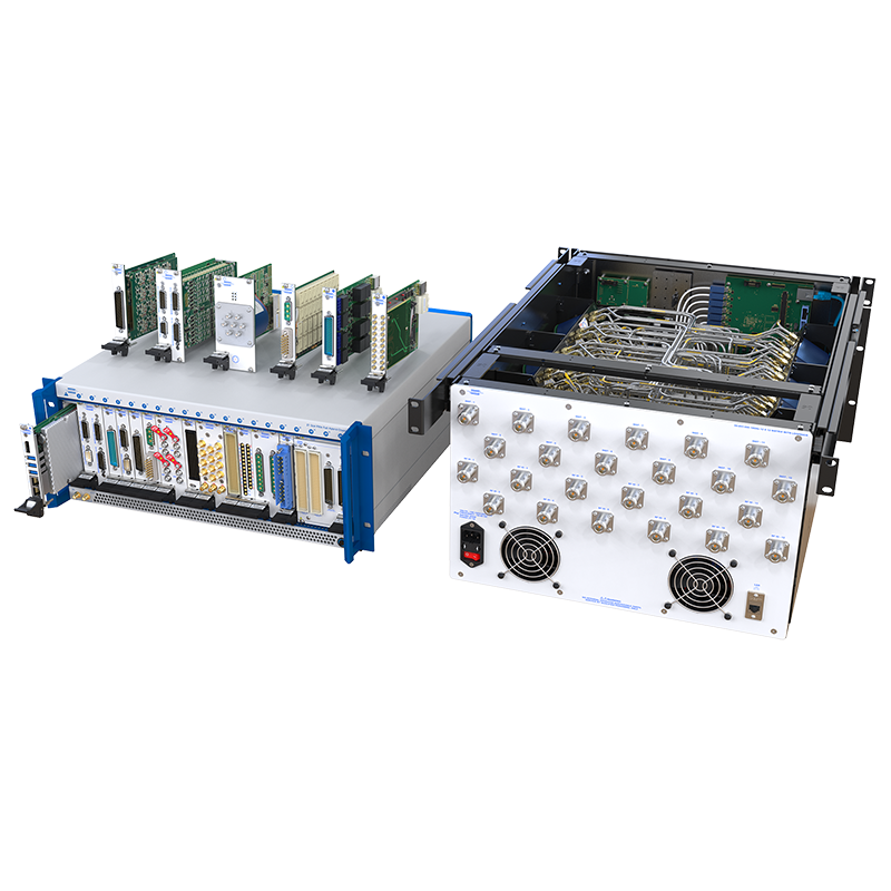 • A 21-slot fully hybrid PXIe chassis and single-slot PXIe embedded controller