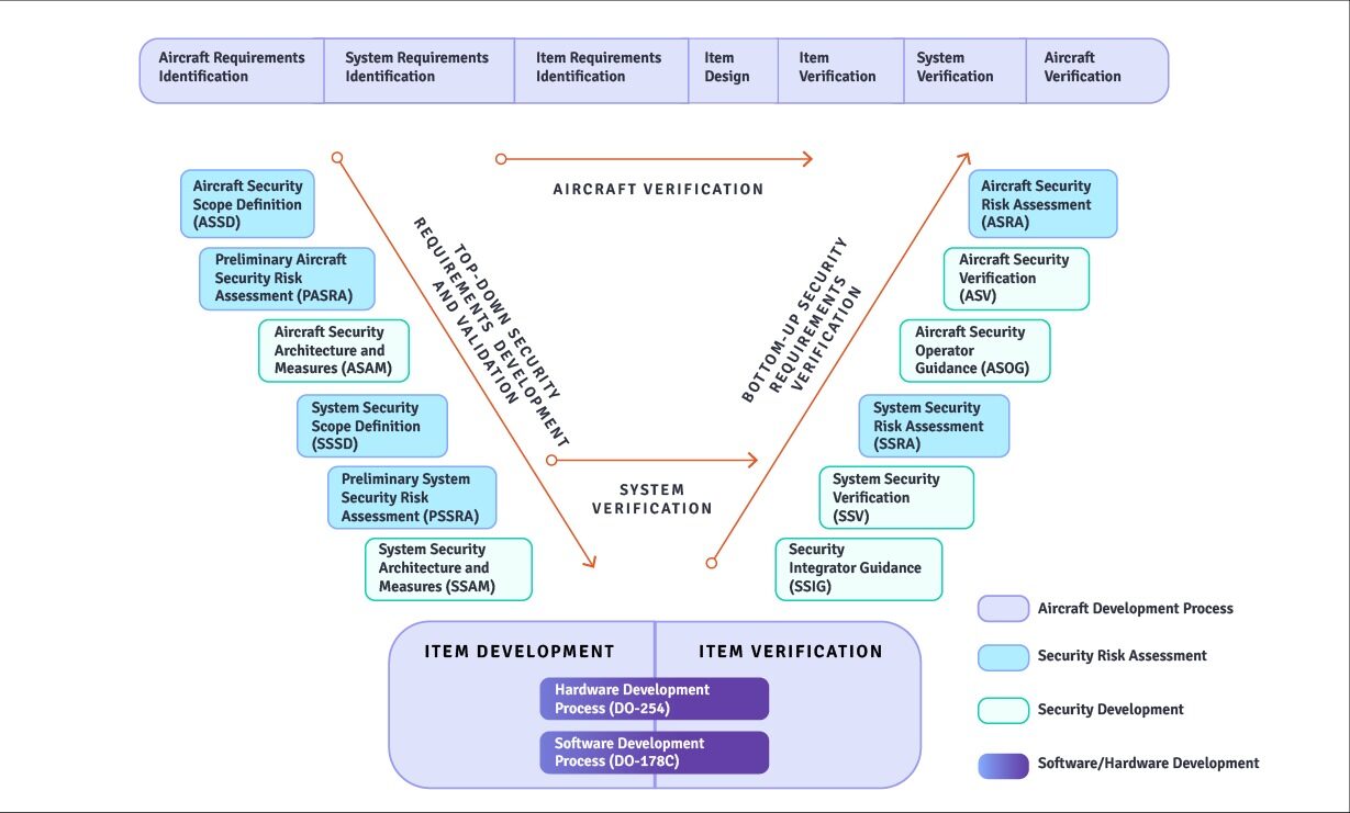 Security process and software development process as part of the aircraft development process