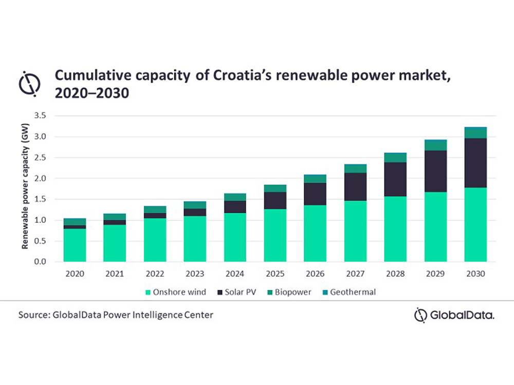 According to GlobalData’s latest report, ‘Croatia Power Market Outlook to 2030, Update 2021 – Market Trends, Regulations, and Competitive Landscape’, the Croatian Government intends to increase the share of renewables in its power mix. The current mix is 798 megawatts of wind power and 85 megawatts of solar perovskite capacities, and the government is targeting 1.36GW of wind and 0.77GW of solar by 2030.
