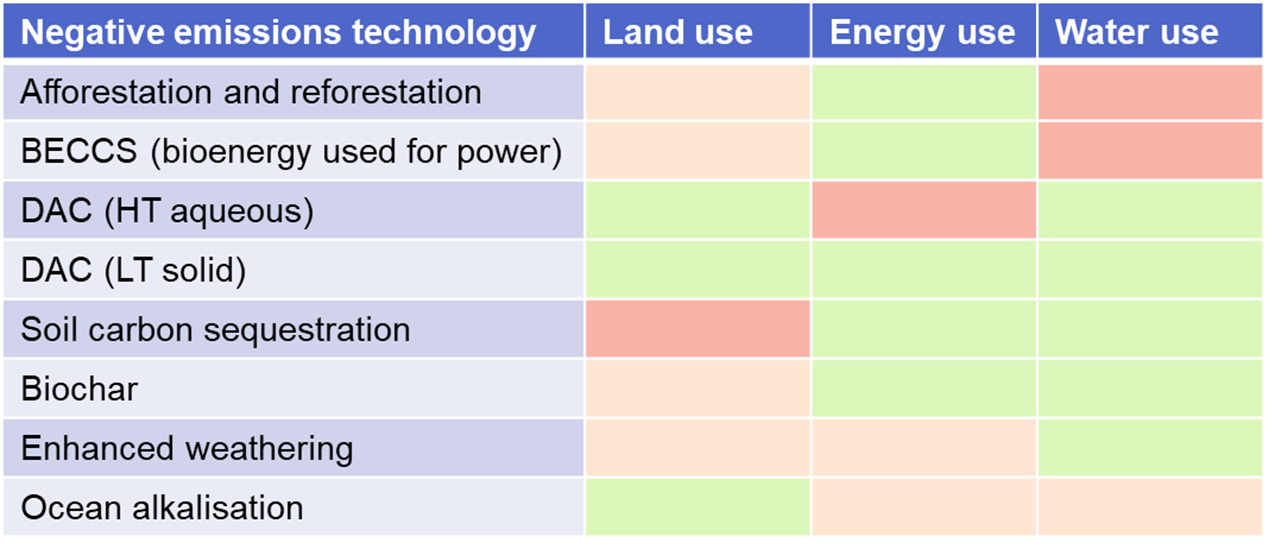 Technical and environmental characteristics of NETs. Source: IDTechEx report, ‘Carbon Capture, Utilisation, and Storage 2021-2040’