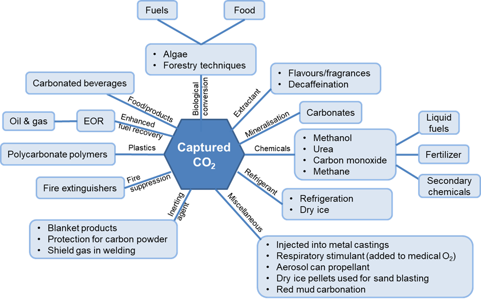 Once CO2 has been captured, either from a point source or directly from the atmosphere, it can either be buried underground, where it cannot contribute to climate change, or processed into an industrially useful product. At the moment, almost all captured CO2 is stored underground, with much of it being used for enhanced oil recovery (EOR), where pressurised CO2 is forced into old oil wells to drive out more oil.