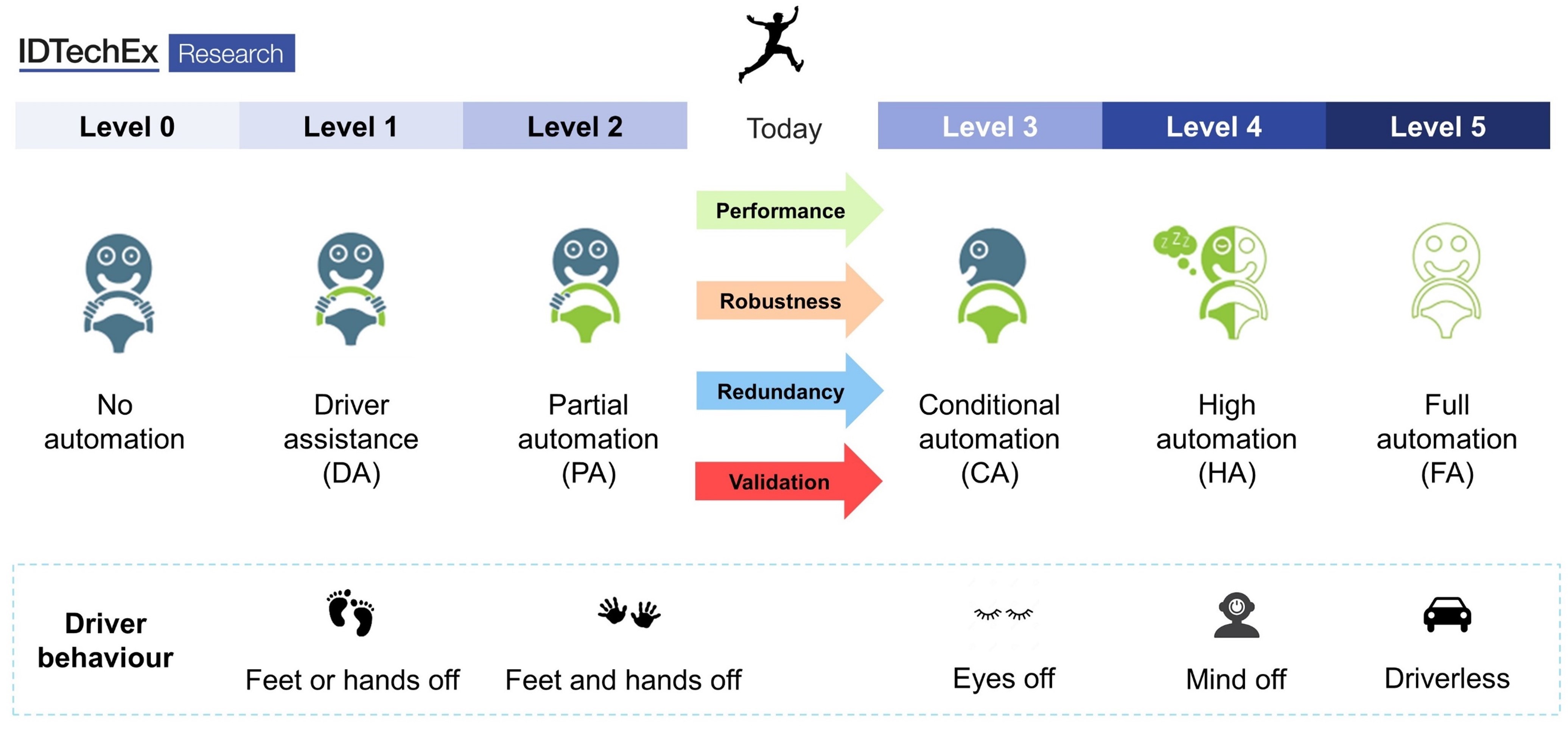SAE levels of autonomy summarised by IDTechEx. Source: IDTechEx