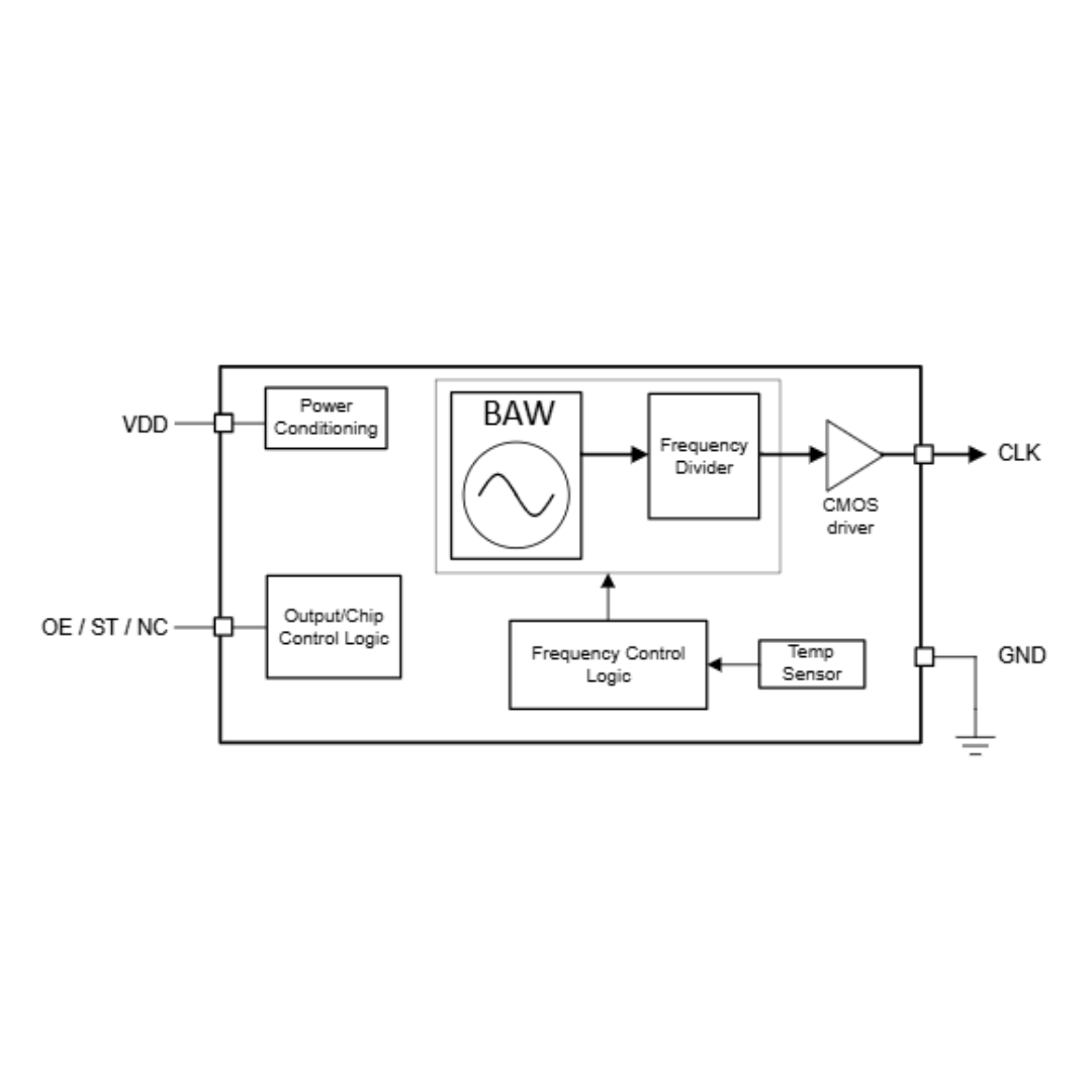 Texas Instruments’ high-precision Bulk-Acoustic Wave (BAW) micro-resonator technology is integrated directly into a package allowing for low jitter clock circuitry. BAW is fully designed and manufactured at TI factories like other silicon-based fabrication processes.