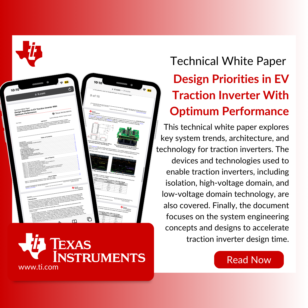 This technical white paper explores key system trends, architecture, and technology for traction inverters. The devices and technologies used to enable traction inverters, including isolation, high-voltage domain, and low-voltage domain technology, are also covered.