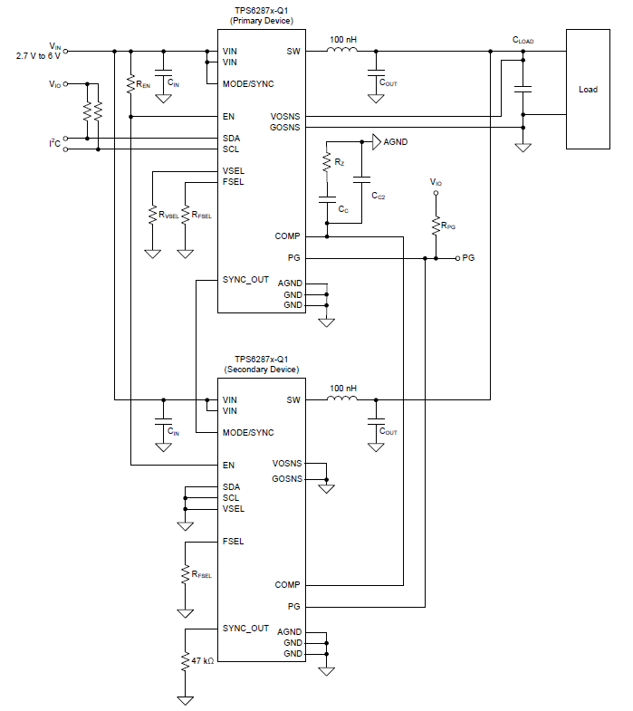 Figure 1. Two TPS62876-Q1devices in a stacked configuration