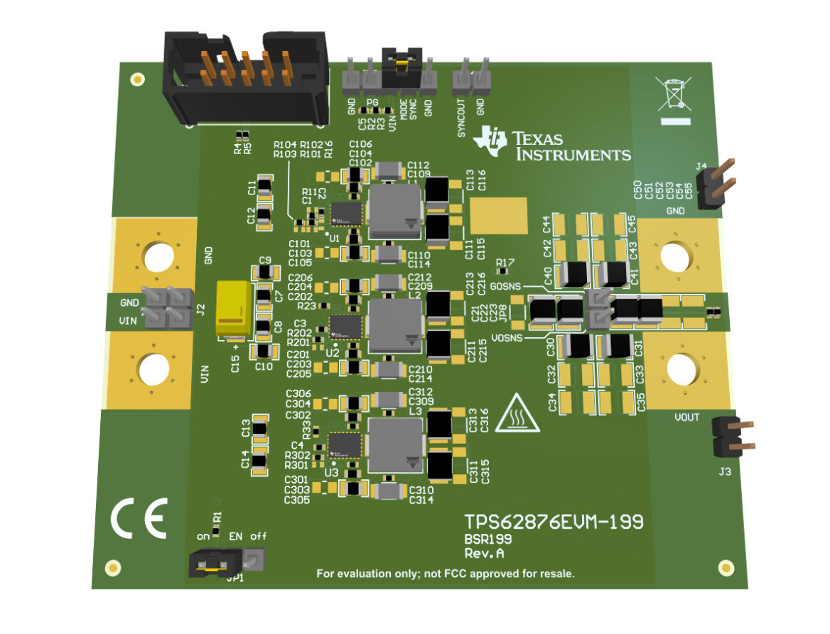 Figure 2. Example evaluation module of three stacked TPS62876-Q1 buck converter