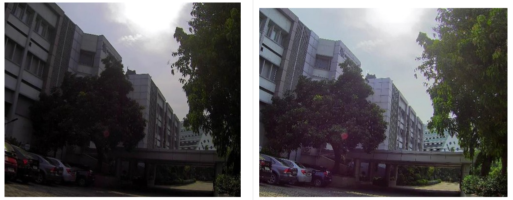 The image below illustrates the camera’s image in normal mode and HDR mode.