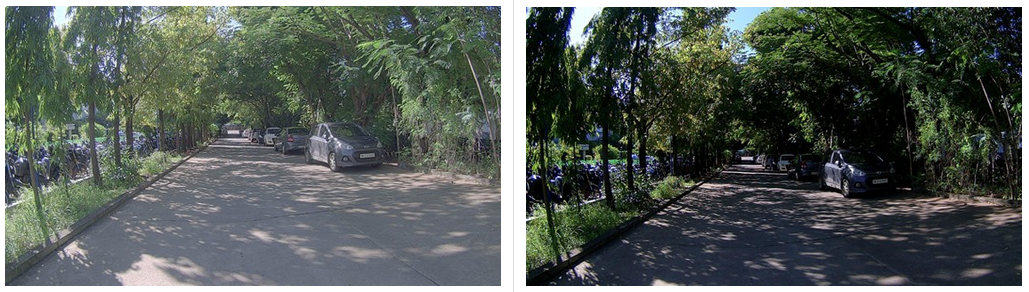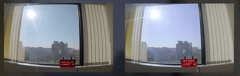 In the image below, the output image of the camera without LFM and the output image of the camera with the LED Flicker Mitigation (LFM) feature.