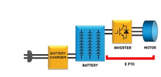 The ePTO system consists of an inverter and an electric motor powered by a DC power source, for example, a battery. Running auxiliary loads from the battery removes the need to idle the engine during PTO, which reduces fuel consumption, and eliminates air and noise pollution. Similar to a standard PTO, it can be connected to a mechanical transmission system (cardan shaft or gearbox) or to a hydraulic pump. This, however, creates new demands on the hydraulic pump and motors with opportunities for further improvements in power density, efficiency, noise level and robustness.