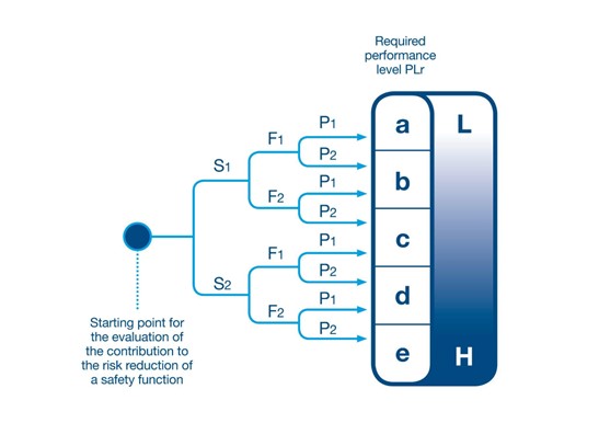 ISO 13849-1 is central to the safe design and installation of machinery. This standard specifies the methodology and requirements for the design and integration of the safety‐related parts of control systems (SRP/CS), including safety functions, relay modules, and control devices. Crucially, it also defines the framework for evaluating the required performance level (PL) for an application (Figure 1).
