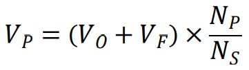Where VO is the output voltage, VF is the output rectifier diode voltage drop, NP is the primary winding number of turns, and NS is the secondary winding number of turns.