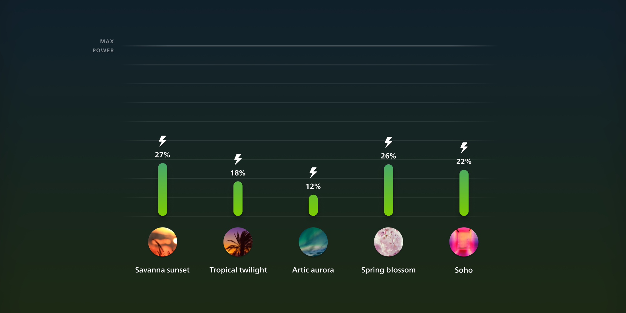 Philips Hue scenes can create different looks in a room or zone and they’re also energy efficient. To illustrate this, the top five most popular scenes (Savanna sunset, Tropical twilight, Arctic aurora, Spring blossom, and Soho) can reduce the total energy consumption of a bulb by up to 70%. For example, by using Tropical twilight, you can reduce the amount of energy a bulb consumes by 82%. The ultimate energy-saving scenes are Galaxy, Blood moon, and Beginnings, each reducing energy consumption by 88%. Meanwhile, Tokyo and Motown come in second, each reducing up to 87% of energy consumption. Philips Hue users can benefit from these scenes by creating a unique ambiance for dinner with friends or relaxing on the couch, and save energy at the same time.
