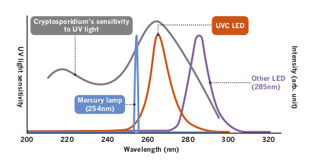 On the other hand, high-power UVC LEDs operating at about 100mW are needed for applications such as treating drinking water and pools. These are typically driven at up to 250mA.