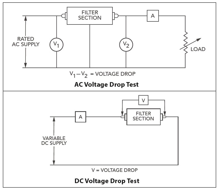 The filter’s insertion loss or attenuation characteristics should be verified not just at the no-load, but for the full-load cur­rent levels as well (see Figure 2). Since inductors are one of the key components in the filter, it is important to note that variables such as the type of core material and saturation cur­rent level through the inductor can affect the value of the choke. Using the smallest loss value possible and keeping the inductor ESR small will help. For more information, see the period, insulation resistance and voltage drop (Figures 3 and 4) must be repeated.