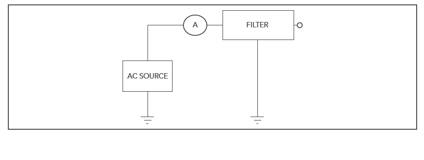 The impedance of the filter is measured at the relevant power network frequency, i.e., 50Hz for Euro­pean applications and 60Hz for North American applica­tions. This is performed at a defined temperature, such as 25°C. Current flowing through this impedance, of course, will cause a voltage drop across the filter resulting in a change in the voltage seen at the load end of the filter.