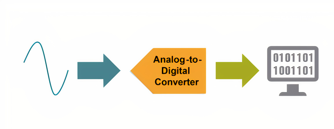 In simple terms, an ADC measures the analogue signal at a uniform rate and assigns a digital value to each sample. The resolution of the digital value is dependent on the number of bits used. Each digital value represents a range of analogue values, resulting in the digital output of a smooth sine wave becoming a series of digital steps or levels.