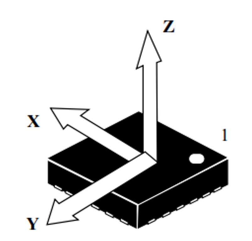 Figure 3. Measurement of acceleration and deceleration forces in three axes relative to the MEMS sensor IC package (source ST Microelectronics)