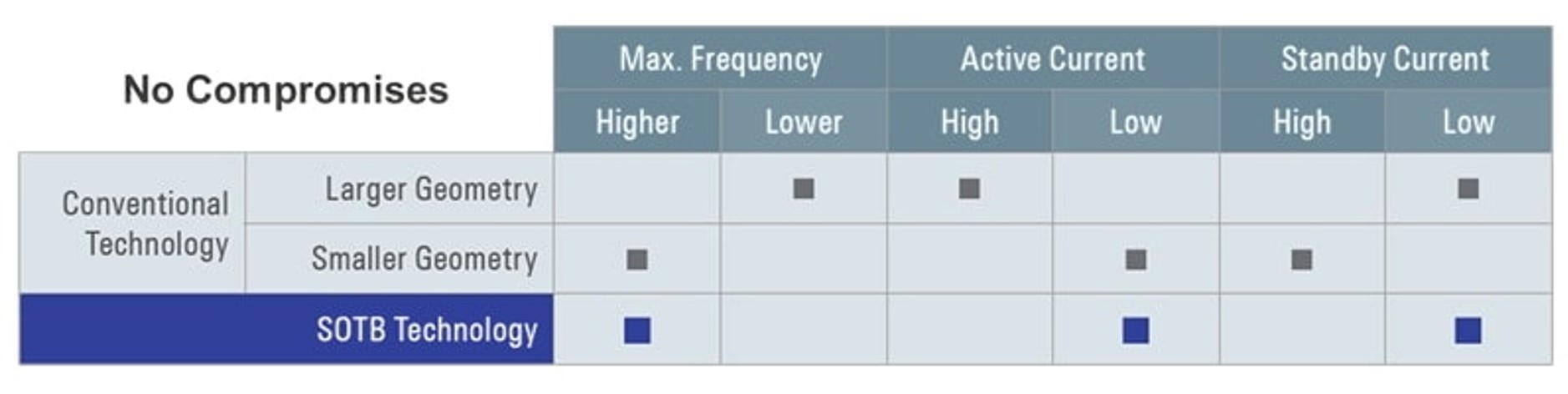Figure 5. A comparison of the Renesas SOTB process technology (source Renesas)