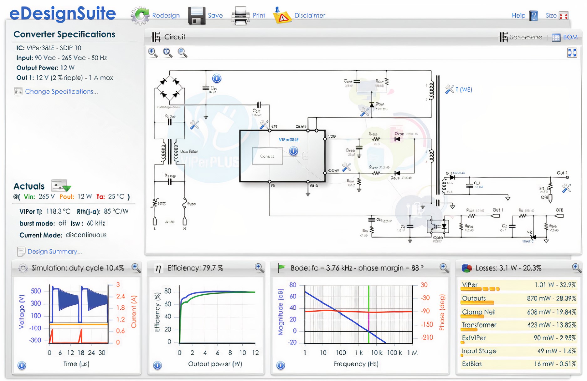 Figure 6 above highlights an example of the ST eDesignSuite used to simulate the operation of a DC/DC converter across different load conditions and PWM (pulse width modulation) switching frequencies.