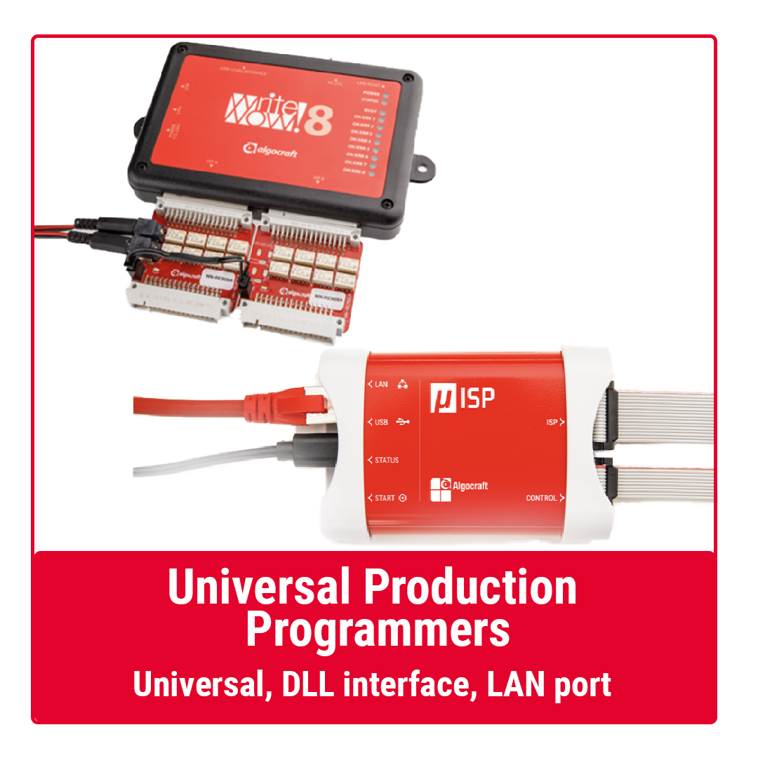 The Algocraft’s programming systems line represents a valid support to the programming; the WriteNow! technology is well consolidated in the market (over 10 years). It provides a professional alternative solution to the ‘USB Stick Programmers’ thanks to µISP series. The WriteNow! series approaches instead the parallel programming of multi-panel boards reducing drastically in this way the typical programming time cycle.