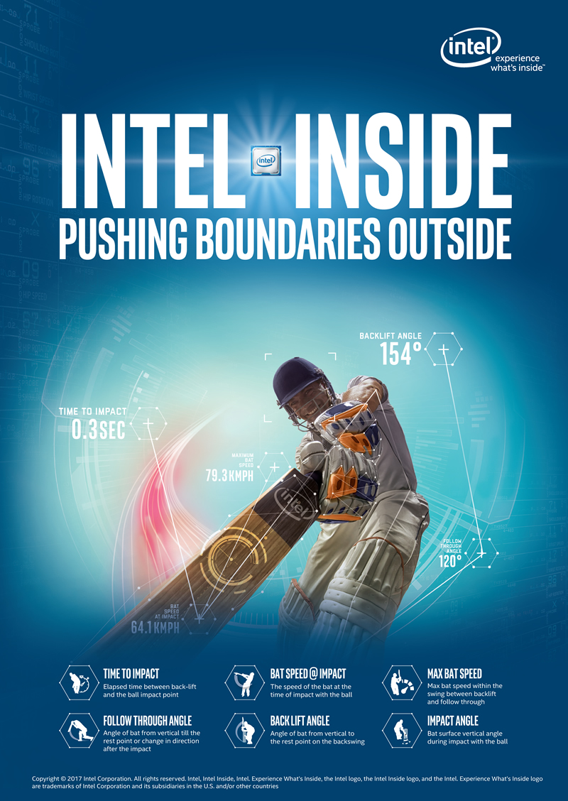 During his presentation, Dua introduced a bat sensor powered by Intel Curie technology that can be mounted on any cricket bat to generate data for every stroke that the batsman plays. With this technology, parameters like back-lift, bat speed and follow-through can be tracked for every cricket stroke. Several batsmen will use these bat sensors in the games at the 2017 Champions Trophy, enabling new insights on stroke play and rich storytelling during broadcasts.
