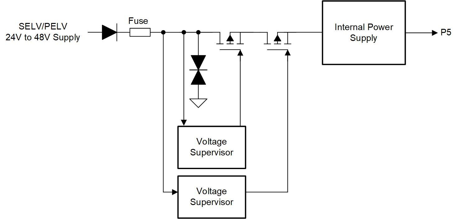 Obviously, there are multiple ways to obtain compliance with IEC 61508 SIL or ISO 13849 PL. In particular, monitoring the voltage of a power supply can increase diagnostic coverage and hardware fault tolerance alike.