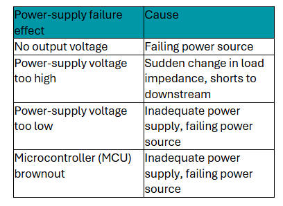 In a perfect world, a power supply will provide a constant voltage and current that never exceeds the specific design requirements. In the real world, however, not only do power supplies introduce error, but they can also occasionally fail. Table 1 includes some examples of power-supply failures and their causes.