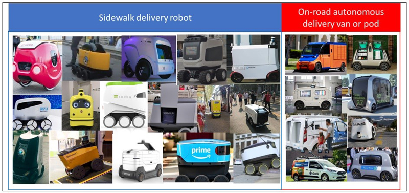 The image below shows various autonomous robots and vehicles (sometimes called pods) developed around the world. These come in a variety of shapes and forms, reflecting the diversity and breadth of design and technology choices which must be made to create such products.