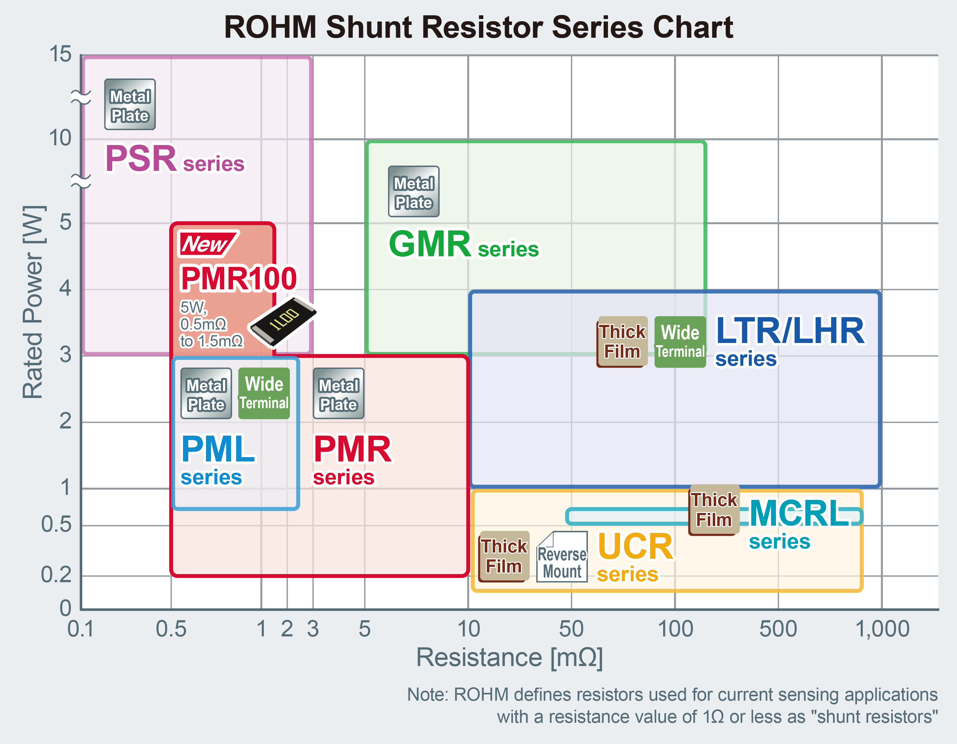 The PMR series represents the most commonly used metal plate resistors among ROHM’s shunt resistor lineup.