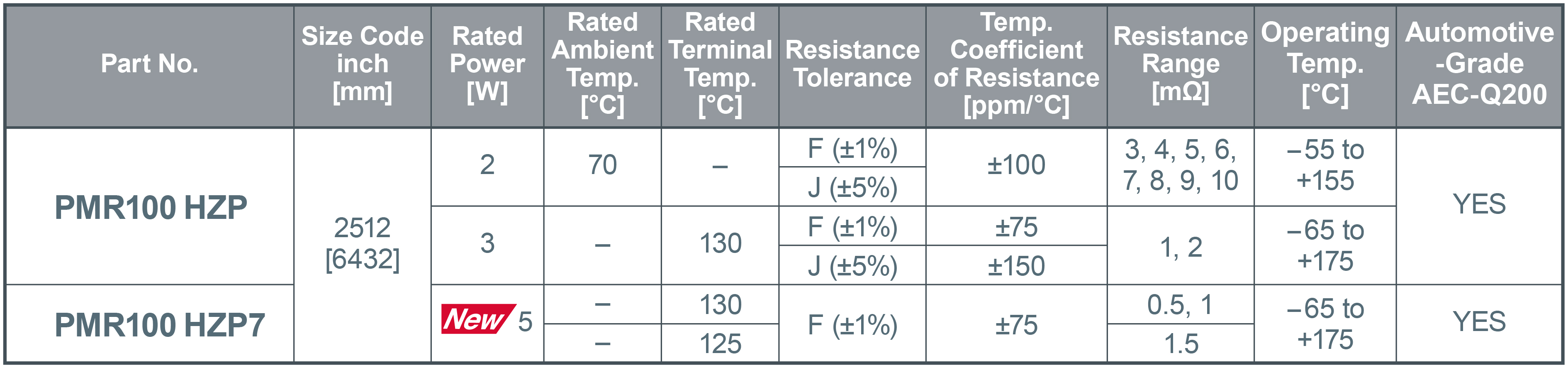 This series is now available in resistances from 1mΩ (PMR100HZP7FV1L00). Additional resistance values will be added as needed.