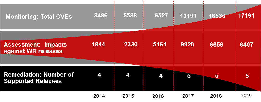 Customers clearly benefit from Wind River’s standard support for up to five years (which can be extended for the lifespan of the device). Regular maintenance, including the 4 step CVE process, can radically reduce the hassles, lower the costs, and protect customers from the risks of security vulnerabilities across their entire lifecycle.
