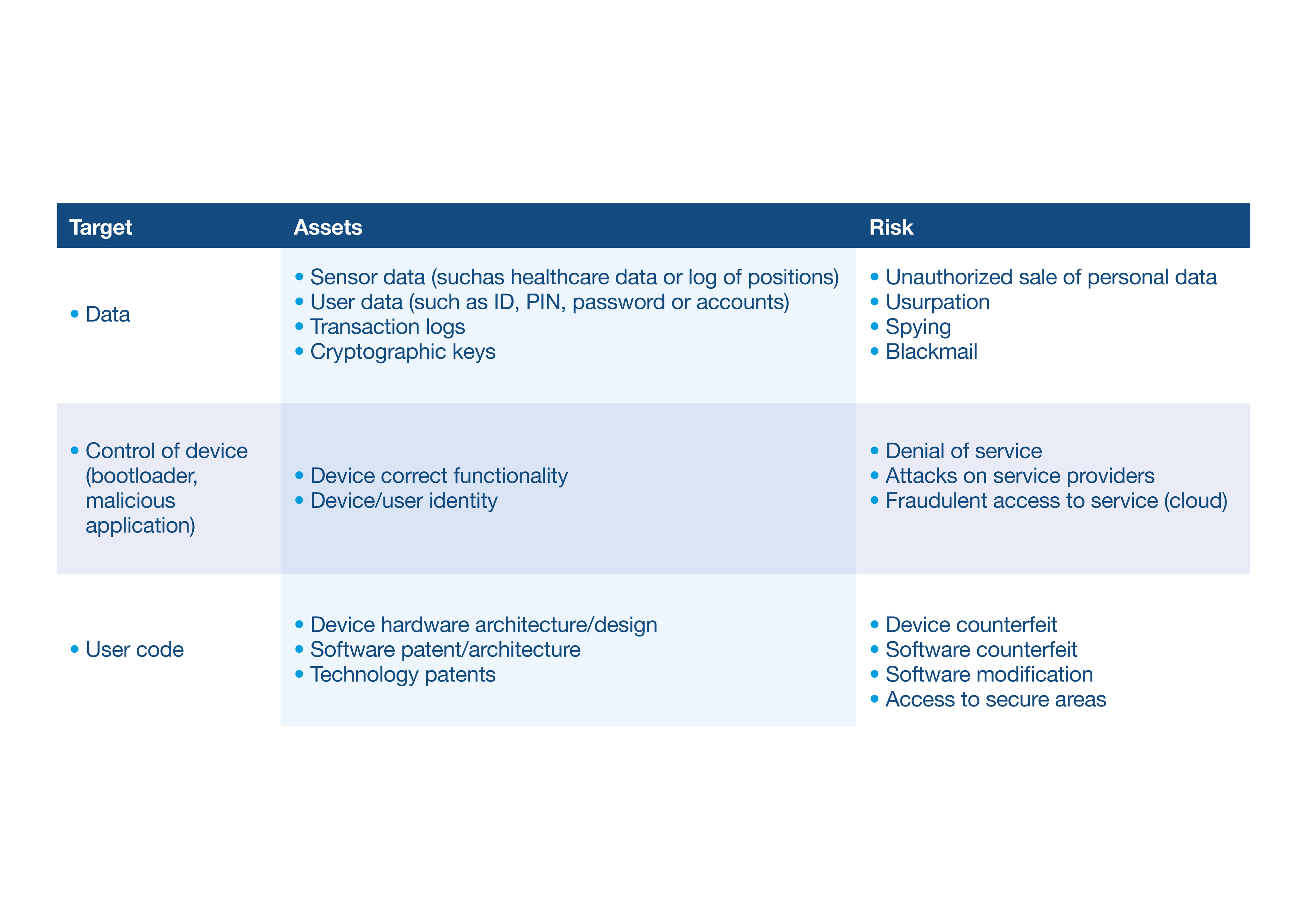 Figure 2: The classification of targets, assets, and associated risks help determine which security methods to implement. (Source: STMicroelectronics)