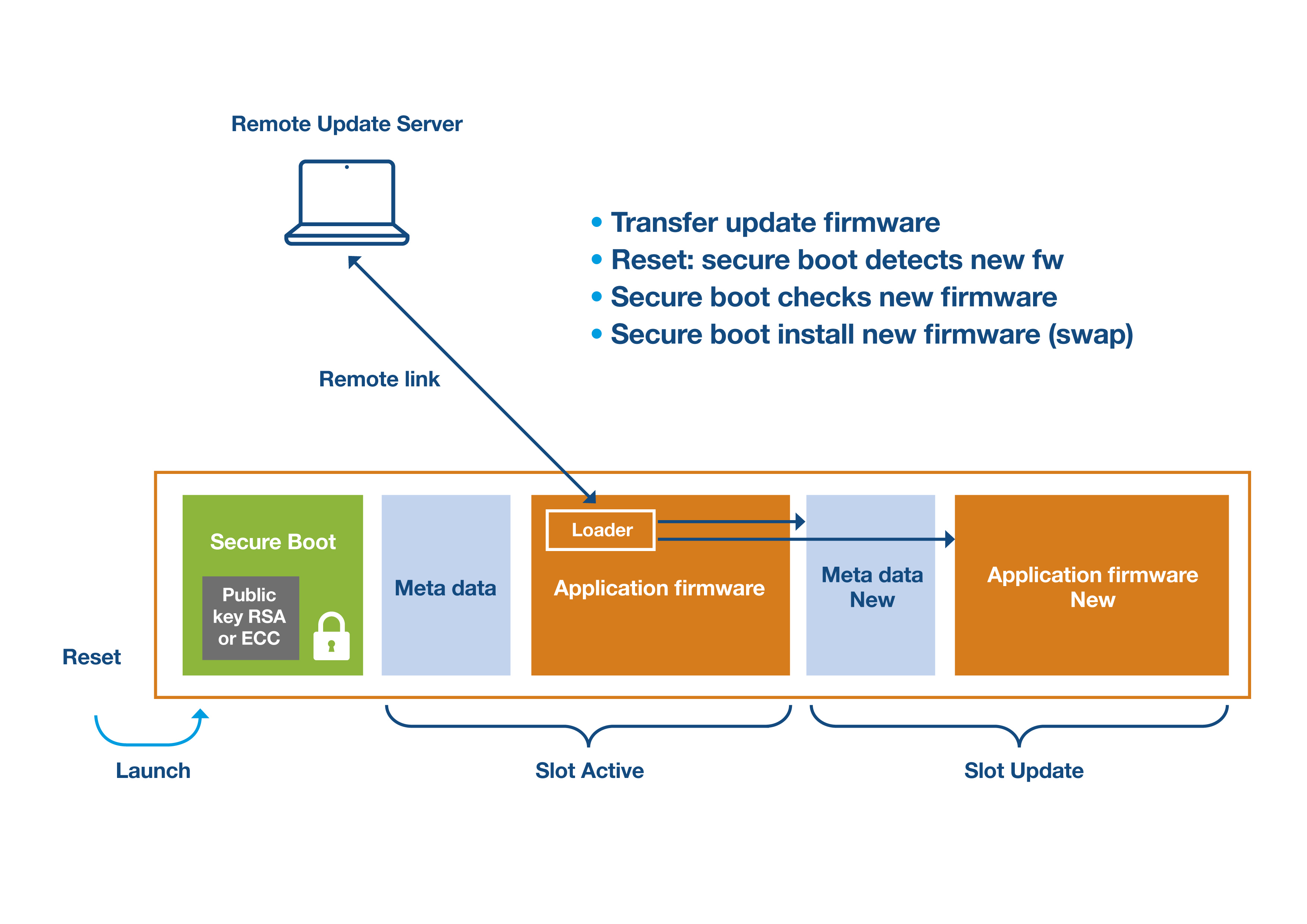 Figure 8 illustrates the process of a remote firmware update. There is a requirement for two memory ‘slots’ for both the current firmware and the updated version.
