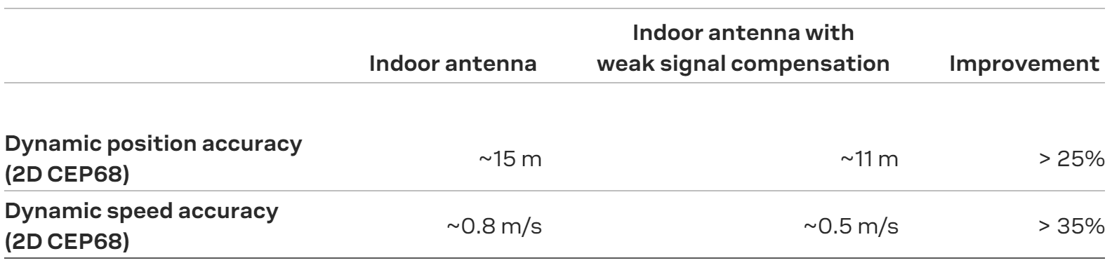 By improving position and speed accuracies by over 25% in real world scenarios, u‑blox M9’s unique weak signal compensation feature will help you push your application’s performance closer to the datasheet values. To learn more about how weak signal compensation can improve the performance of your product, contact your nearest sales representative or field application engineer.