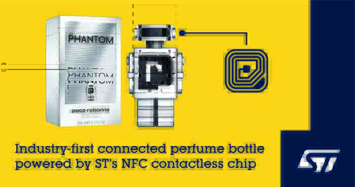 Access to Paco Rabanne’s Phantom Universe is enabled by ST’s chip, the ST25TV, which is encapsulated into the innovative Phantom-bottle cap. The novel cap meeting the technical and aesthetic needs of Paco Rabanne’s Phantom fragrance was developed through close collaboration among ST, Paco Rabanne, tag inlay-specialist Paragon ID, and VPI (FaiveleyPlastBeauty), an expert in injection moulding, decoration, and assembly.