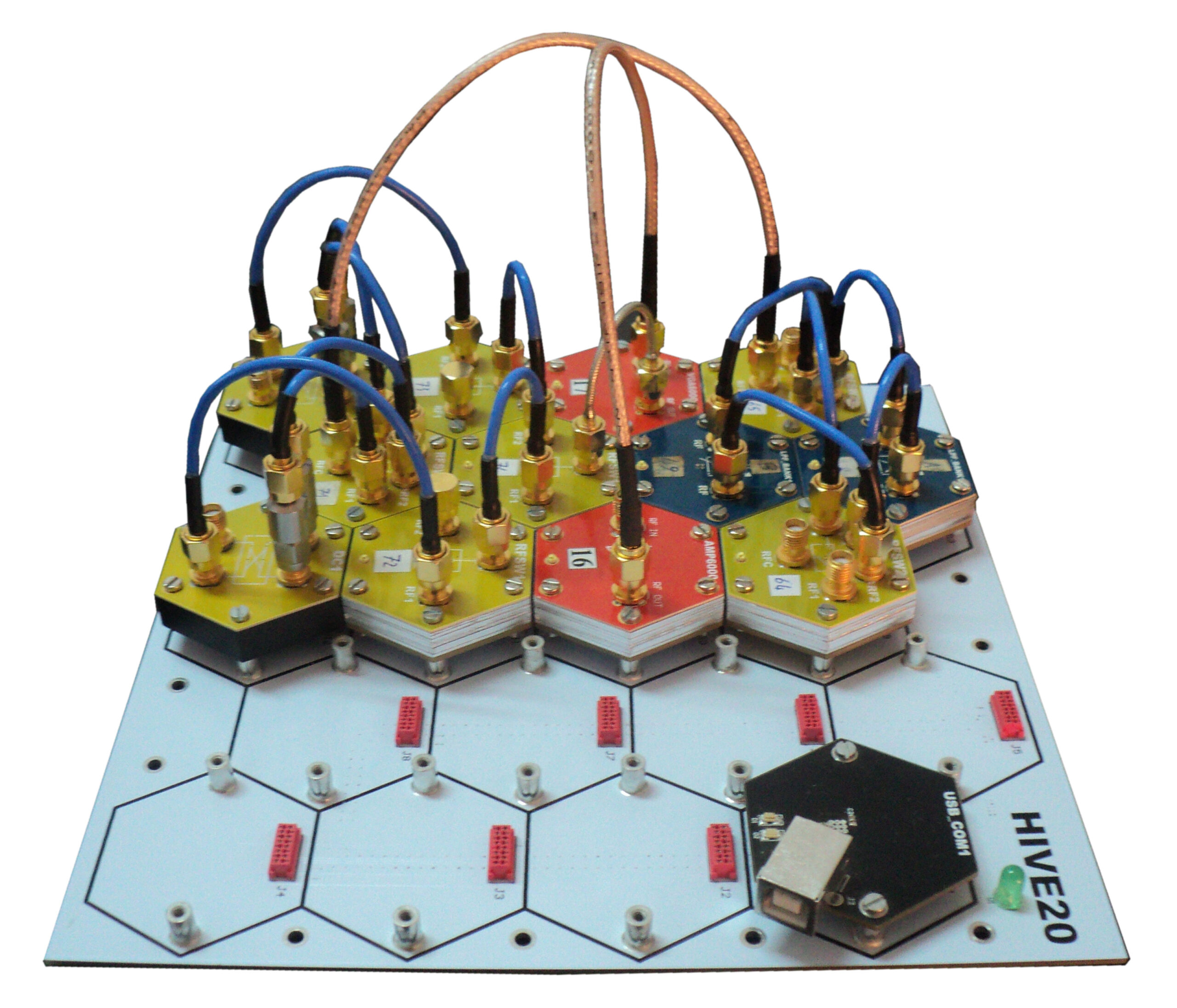 BeeWave acts like an RF breadboard for placing and connecting different ready-made modules, each performing an RF function, to create a wireless system. This novel approach for RF and microwave design enables demonstrations, teaching, and implementation through these simple ‘plug and play’ modules.