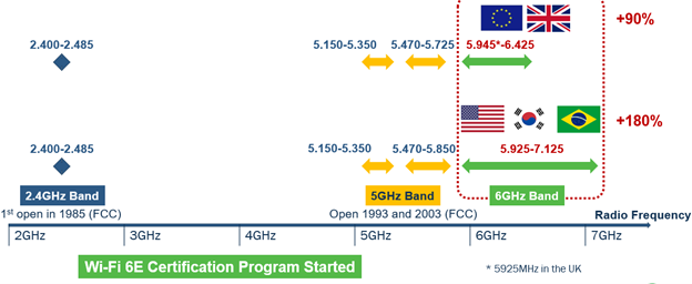 The US Federal Communications Commission (FCC) has defined the U-NII (Unlicensed National Information Infrastructure) frequency bands ranging from 5.150GHz to 7.125GHz to be used for Wi-Fi. An extended version of Wi-Fi 6 called Wi-Fi 6E uses an additional 1200MHz of frequency bands (up towards 7GHz). This will provide the faster speeds and lower latency required for AR/VR gaming, 8K streaming, smart cities, and other applications. These signals will be more immune to interference from other wireless technologies like Bluetooth, Bluetooth Low Energy (LE) and Zigbee. onsemi’s QCS-AX2 chipset can be used to implement a high-performing and efficient Wi-Fi 6E solution.