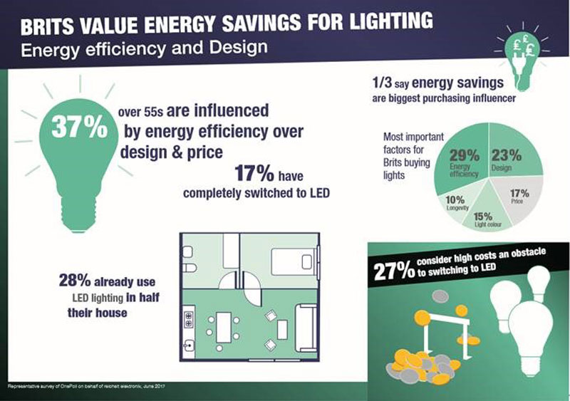 The findings also show that energy efficiency is the most important factor for a quarter of Brits when buying any lamp, as consumers seek the long-term cost savings on offer versus conventional bulbs. Efficiency is of particular concern to over 35s, with 37% of over 55s saying it influences their choice of lighting. Design with a wide range of lighting options (23%) is the second most important factor for Brits.