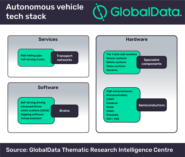 The company’s Thematic Research team’s latest report, ‘Autonomous Vehicles – Global Thematic Research’, reveals that automobile manufacturers can no longer carry on with business as usual as each threat is potentially existential to the legacy carmakers operating in a low growth, low margin sector characterised by over capacity. Cyrus Mewawalla, Head of Thematic Research at GlobalData, commented: ‘‘The sector is seeing its supply lines reset by cumulative advances in enabling technologies typically deployed by the Tier 1 automobile sub system suppliers and a range of AI-first start-ups. As automobiles morph into sentient robots powered by on-board, networked processors fed by data from multiple sensors and smartened up by AI algorithms, a layered value chain will emerge, based on ‘brains’, sensors, auto-grade silicon and Tier 1 auto component suppliers.’’