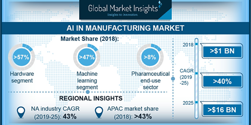 The pharmaceutical end-use segment is accounted for over eight percent of the artificial intelligence in manufacturing market share. Manufacturing in the pharmaceutical industry is always known to generate large amounts of data. The companies are using AI technology to improve efficiencies in biotech manufacturing and process development to improve their gross margins.