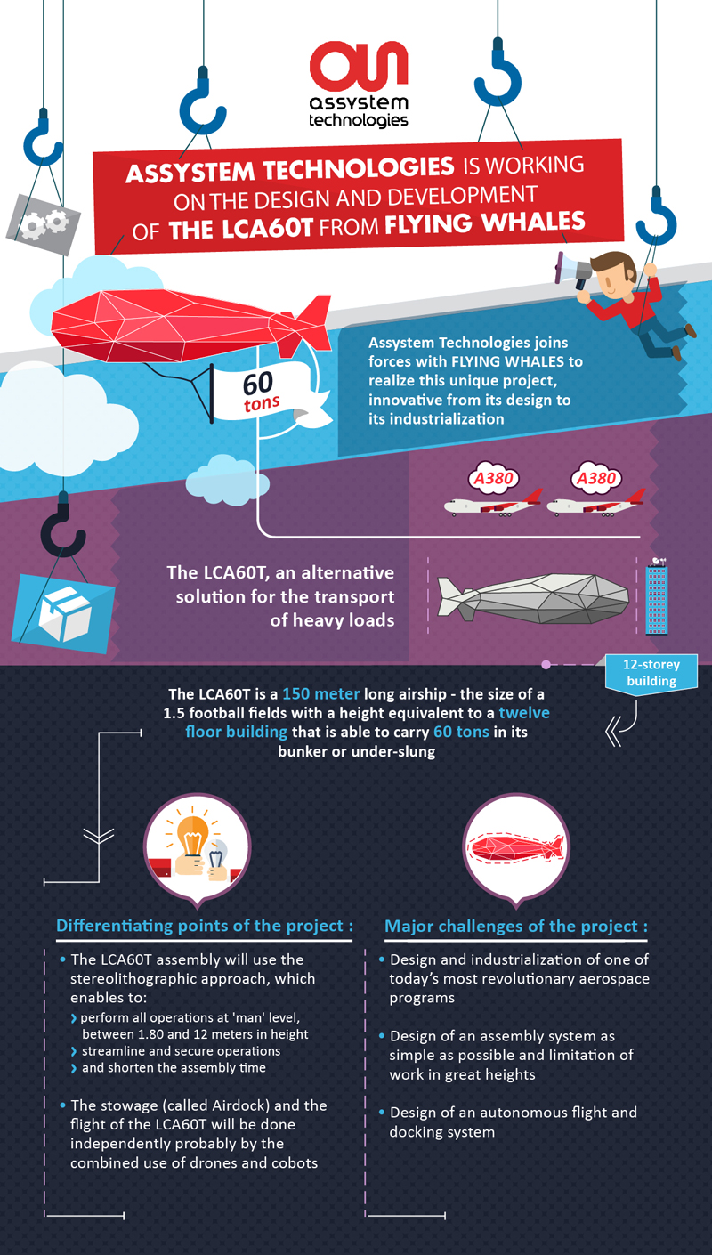 Sebastien Bougon, Founder of FLYING WHALES commented on the collaboration: “Assystem Technologies’ team imagined the LCA60T assembly line and provided us with a turnkey service. As a result we’ve developed intelligent solutions that serve greatly the path of the programme.”