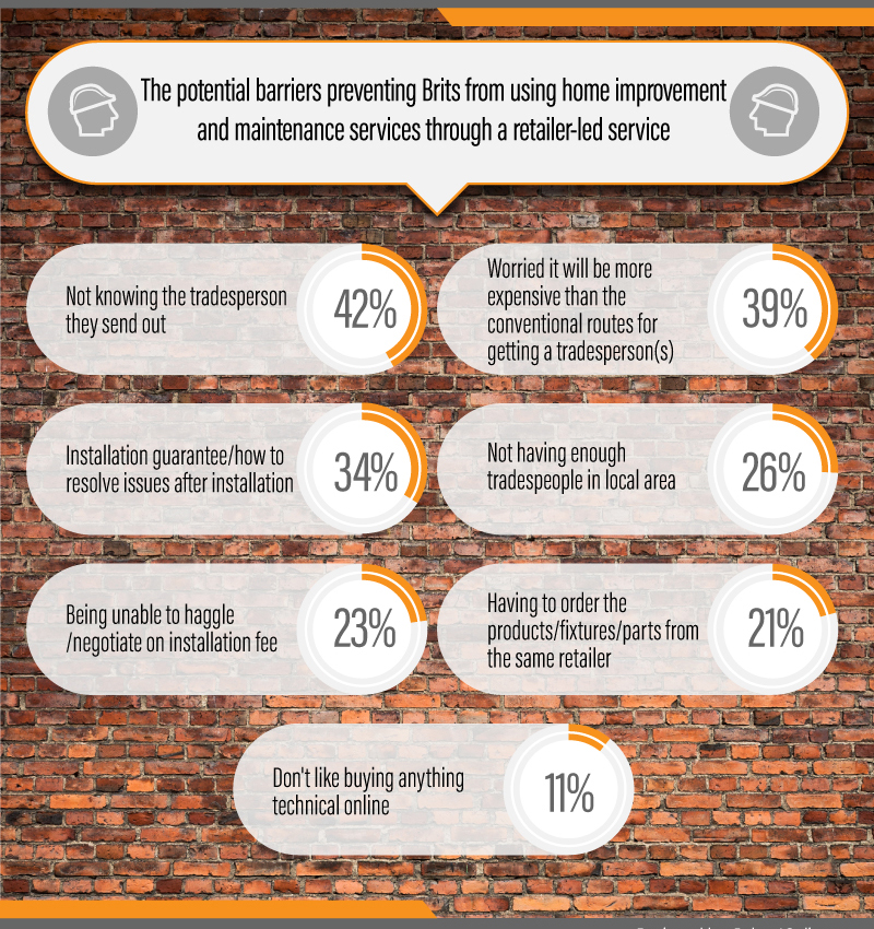 Moreover, 26% are sceptical about a home improvement and maintenance service not having enough tradespeople local to their respective living location signed up to a given retailers database.