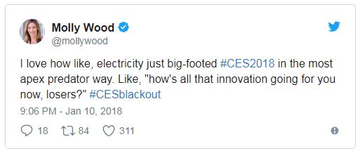 At approximately 11:15am local time, large parts of the Las Vegas convention centre lost power. Brightly lit company booths were plunged into darkness. Hundreds of journalists found themselves in the dark. Fortunately, emergency lighting stayed on and backup batteries kept WiFi connections functioning.