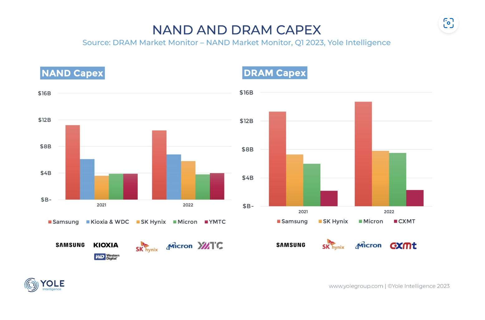 Simone Bertolazzi, Ph.D.,Principal Analyst, Memory at Yole Intelligence: “The restrictions set in October 2022 by the US government have resulted in strong headwinds against China’s memory ambition, jeopardising the fab-capacity expansion and the roadmap execution of Yangtze Memory Technologies Co. (YMTC) and ChangXin Memory Technologies (CXMT), the two leading Chinese memory IDMs”,
